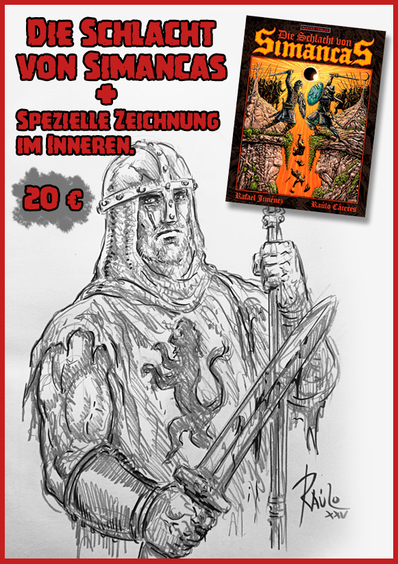 - Die Schlacht von Simancas (Deutsche Ausgabe) + signierte Zeichnung mit Widmung im Inneren: 20 Euro.